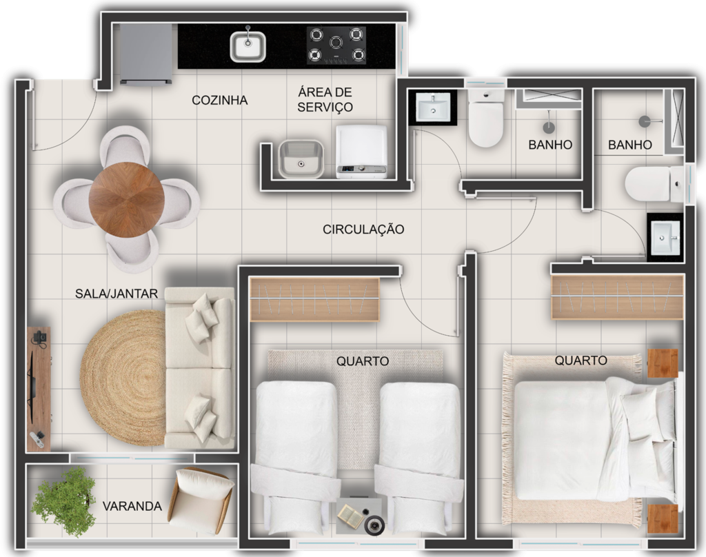 Não. Ele vem pronto para morar, com acabamentos modernos e estrutura planejada para economia de energia e ventilação natural.